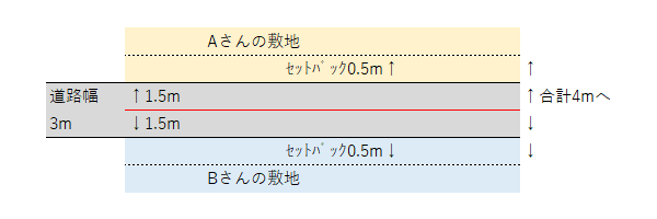 👉感覚としては、「自分の土地の一部を道路として差し出す」ようなイメージに近いでしょう。(セットバックと言います)